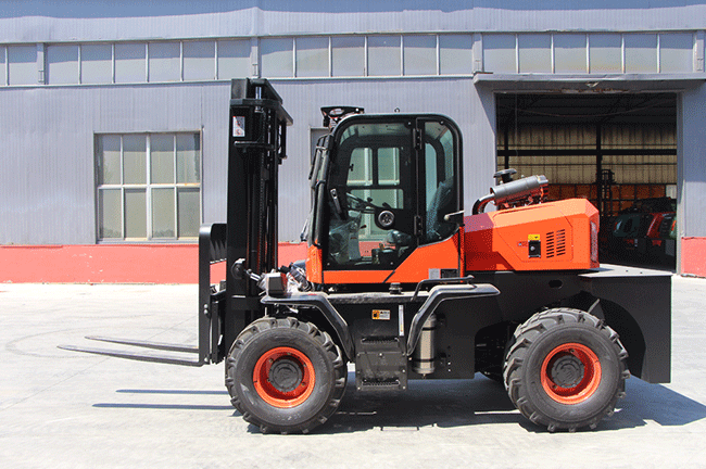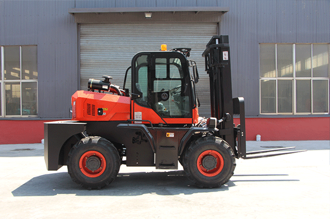 Un rango de mástil de 3.000‑6.000 mm le da a una carretilla elevadora para terreno abrupto espacio para carga en patio, apilado en obra y trabajos de colocación más altos.