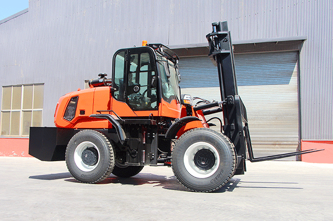 La carretilla elevadora todo terreno JTYC80 está construida para manipulación de materiales en exteriores con capacidad de 8.000 kg, tracción en las cuatro ruedas y velocidad máxima de 30 km/h. Es adecuada para obras de construcción, patios y trabajos de carga exigentes en exteriores.