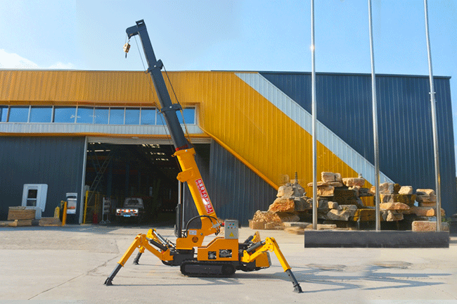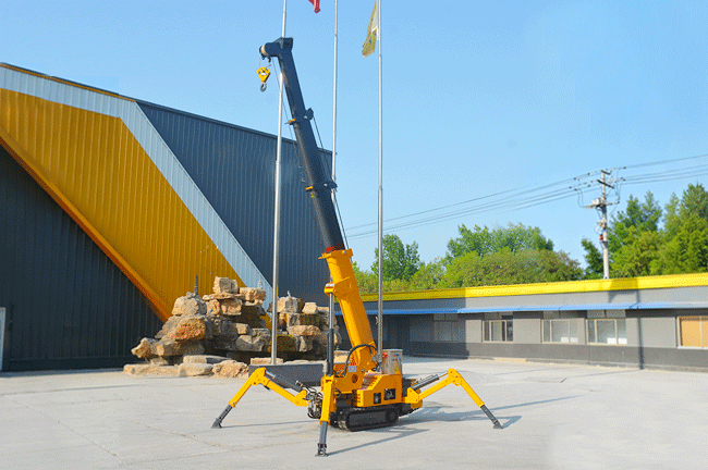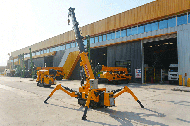 Su peso propio de 1,3 t y tamaño de máquina de 2,5 × 0,6 × 1,5 m mantienen el cuerpo compacto para condiciones de trabajo más estrechas. La grúa también combina una pluma telescópica de 2 m × 4 secciones, longitud de pluma de 6,5 m, ángulo de pluma de 0‑78°, velocidad de elevación del gancho de 0‑8 m/min y pendiente superable de 25° para operaciones de elevación diarias.