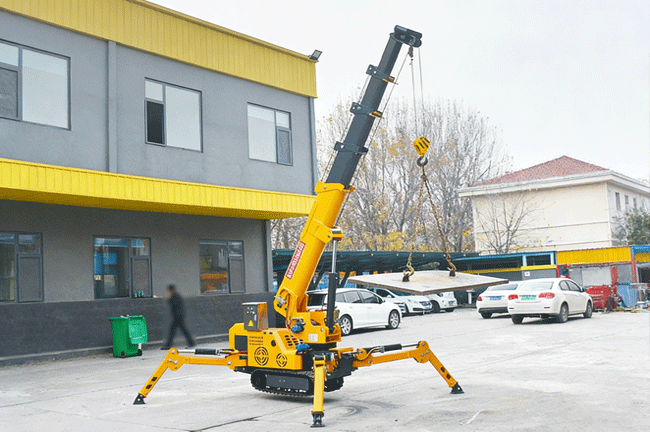 Su peso propio de 1,8 t y tamaño de máquina de 2,78 × 0,71 × 1,62 m mantienen el cuerpo compacto para condiciones de trabajo más estrechas. La grúa también combina una pluma de 6,5 m, velocidad de cabrestante de 0‑8 m/min, suministro eléctrico AC380V, combustible gasolina / 8 L y una batería de 12 V 45 Ah para operaciones de elevación diarias.